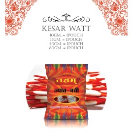 kesar wattPremium quality saffron-coloured cotton wadding used for pooja rituals and making decorative wicks. Ideal for temples and special occasions to enhance the sacred atmosphere. Available sizes: 10 gm = 1 pouch 15 gm = 1 pouch 40 gm = 1 pouch 80 gm = 1 pouch..
