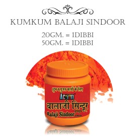 KUMKUM BALAJI SINDOORPremium kumkum balaji sindoor with bright red colour and purity, ideal for tilak, pooja rituals, and temple offerings. Brings devotion, auspiciousness, and divine blessings of Lord Balaji to your worship. Available sizes: 20 gm = 1 dibbi 50 gm = 1 dibbi..
