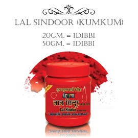 LAL SINDOOR KUMKUMPure and vibrant lal sindoor kumkum ideal for tilak, pooja rituals, and traditional ceremonies. Brings auspiciousness, devotion, and divine blessings to your worship and daily practices. Available sizes: 20 gm = 1 dibbi 50 gm = 1 dibbi..