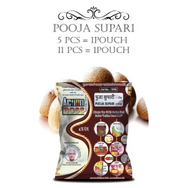 POOJA SUPARIHigh quality pooja supari used in all rituals, hawan, and traditional ceremonies. Essential for offerings to deities, bringing auspiciousness and completeness to your worship. Available sizes: 5 pcs = 1 pouch 11 pcs = 1 pouch..